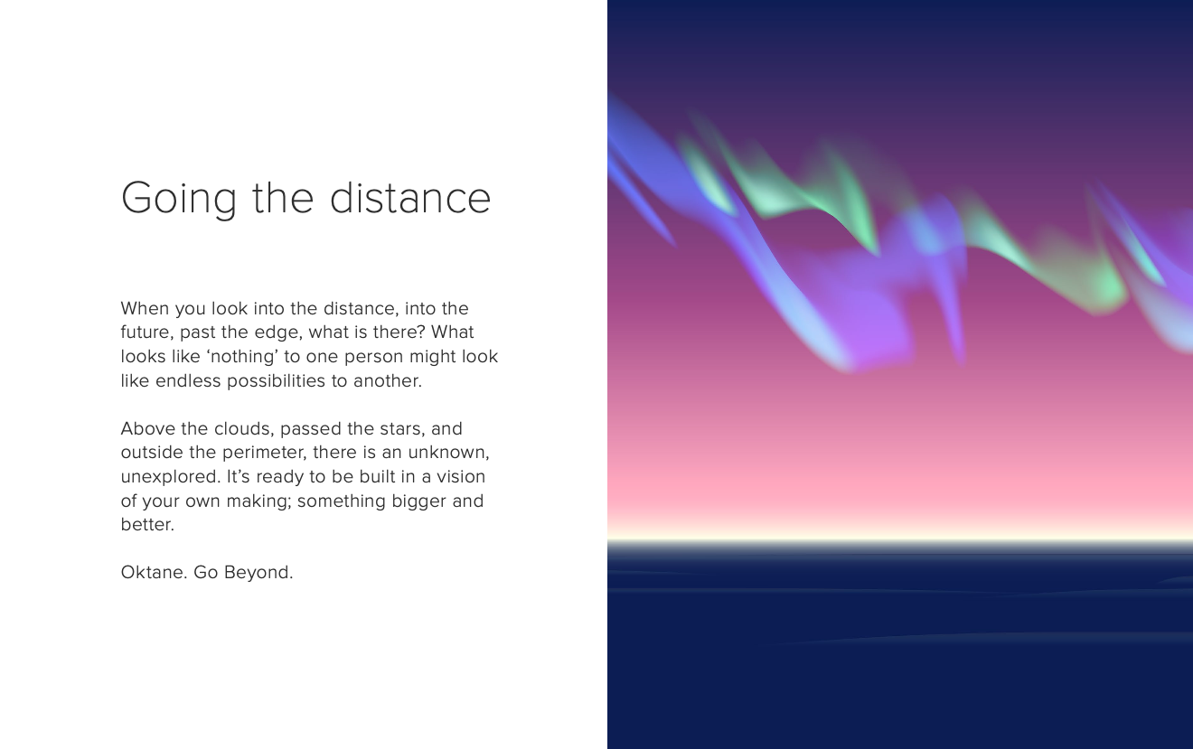 Honestly, ever since this 2018 event, it feels like EVERY conference copied our style and theme. For Oktane18, Okta’s flagship customer conference, the leadership team was ready to take a bold step forward. Departing from past bright and vibrant conference themes, we introduced Beyond, a concept about vision, distance, and seeing possibility where others see limits. I led the creative development of the theme and brand identity, weaving gradients, dark backgrounds, and motion graphics into a design system that felt both futuristic and inspiring. This forward-looking theme framed keynotes, messaging, and the overall event experience, highlighted by President Barack Obama as the keynote speaker.