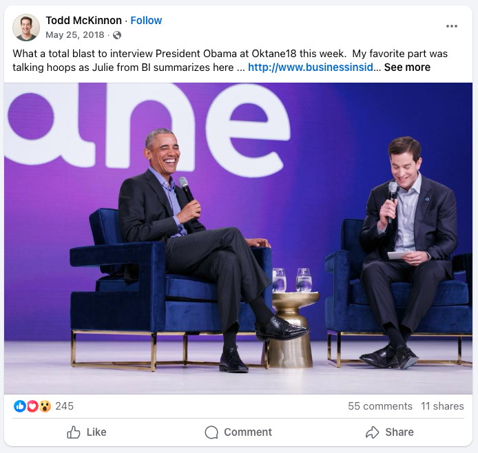 President Barack Obama at Oktane18 with Todd McKinnon