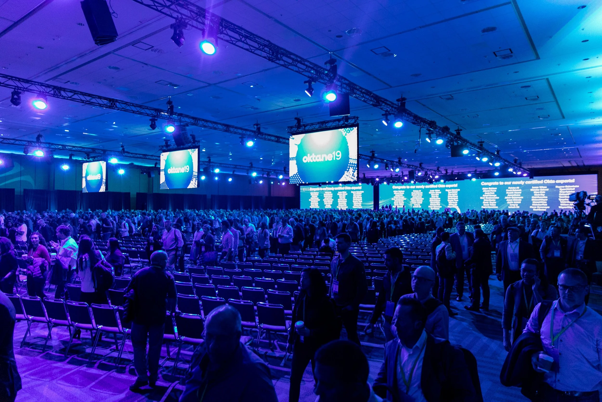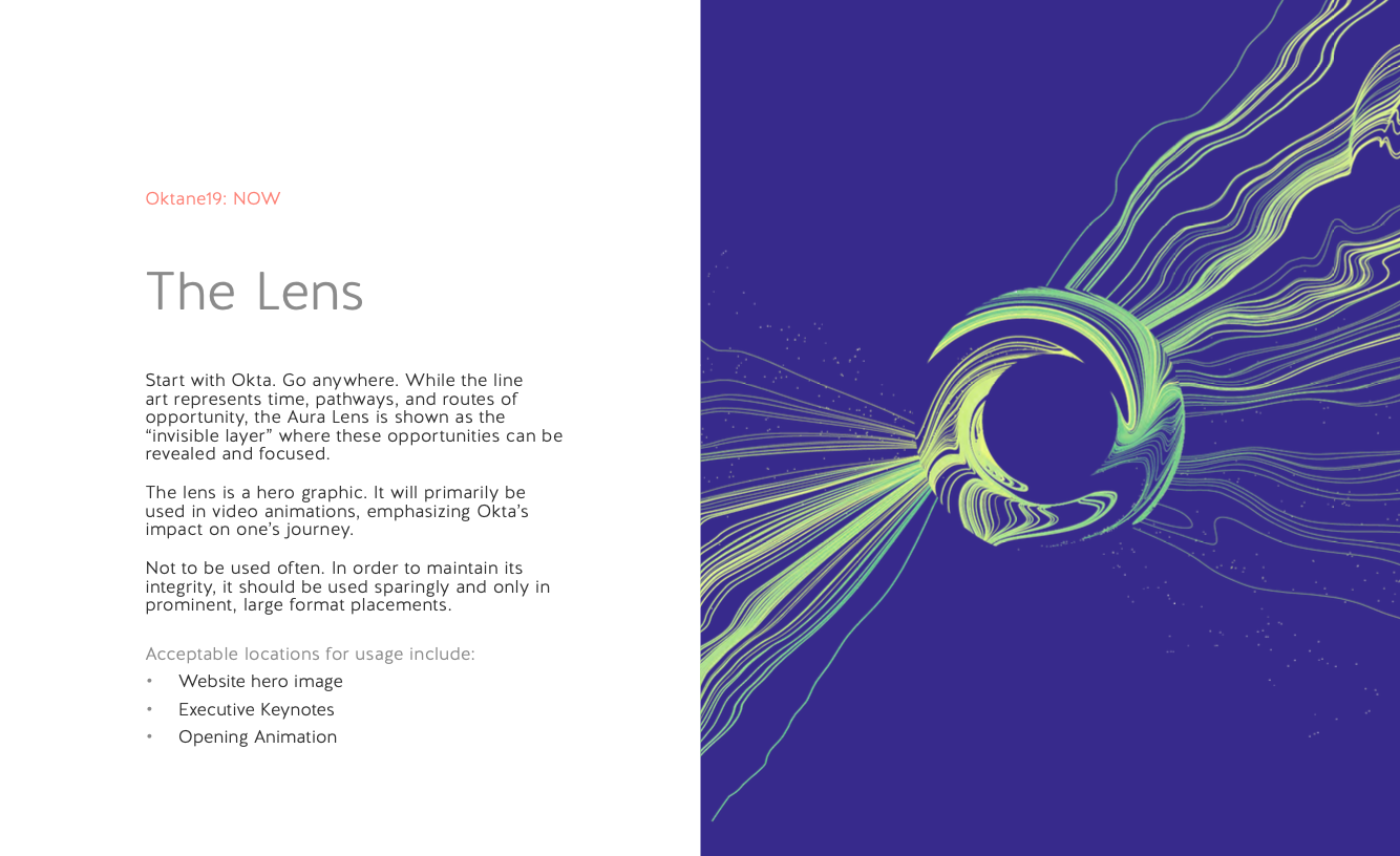For Oktane19, Okta’s annual customer conference, our goal was to create a design system that felt both bold and flexible. We developed a detailed illustrative graphic scheme featuring a striking palette of blurple (a deep, blue-infused purple) paired with bright green. This color story delivered high energy and futuristic vibrancy while maintaining enough simplicity for partner teams to apply consistently across print, digital, and environmental touchpoints. The result was a cohesive visual identity that elevated the event experience. All punctuated by a powerful keynote from Academy Award–winning actress Viola Davis.