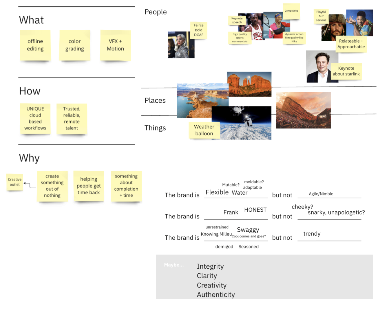 I like to guide clients through collaborative workshops to uncover the What, How, and Why of their brand. We map values, audiences, and differentiators into a framework that doesn’t just sit in a PDF, it becomes a tool for making smarter business decisions.